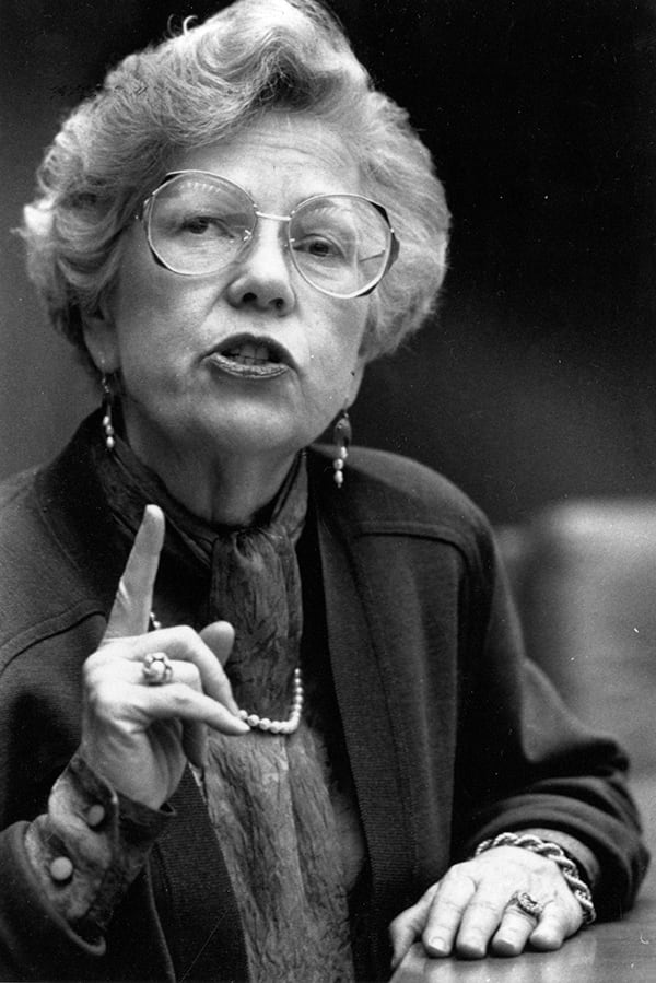 Enshrined in the Michigan Women’s Hall of Fame, Maryann Mahaffey was a champion for women’s rights, filing the precedent-setting lawsuit which established a woman's right to run for office using her birth name, leading the fight to open the doors of the Detroit Athletic Club to women, and enacting an ordinance explaining and prohibiting sexual harassment of city employees.