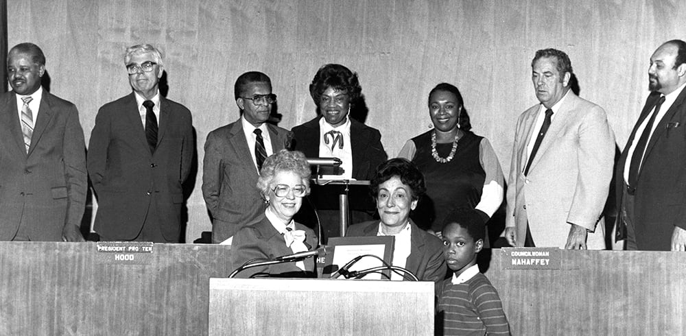 Maryann Mahaffey served 12 years as a City Council President and 32 years as a Member. She was also an author, educator, civil rights activist, volunteer and political leader at local, state, national and international levels for nearly sixty years, putting into action her deep commitment to solving critical social issues.